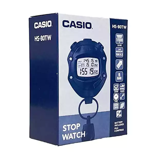Stopwatch Casiio HS-80TW is an Electronic Stopwatch Suitable for the laboratories Playgrounds of schools, colleges, universities, office & polytechnics to measure a time intervals.