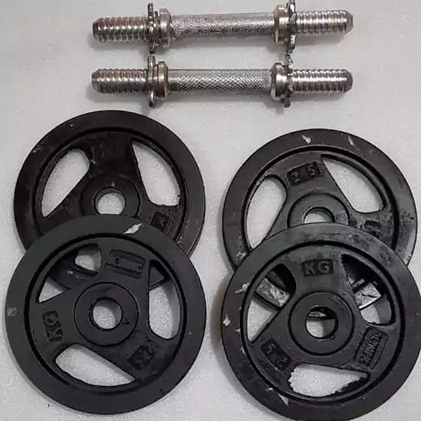 2.5 kg 4pcs=10 kg, 10″ stick 2 pc, Dumbbell set, Black & Silver